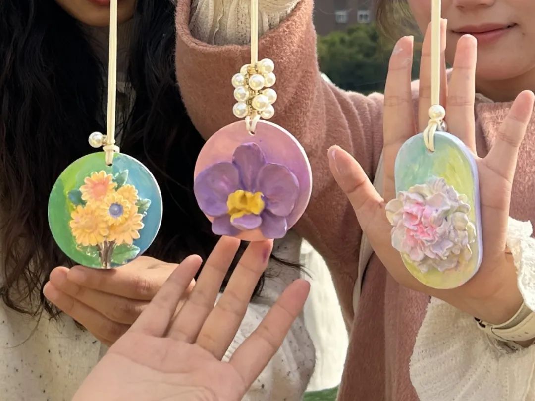 本次春日活動的活動現(xiàn)場分為“花藝工坊”“彩繪花園”“珠語春光”三大主題區(qū)域,參與的同學(xué)們能夠通過沉浸式體驗感悟匠心精神。