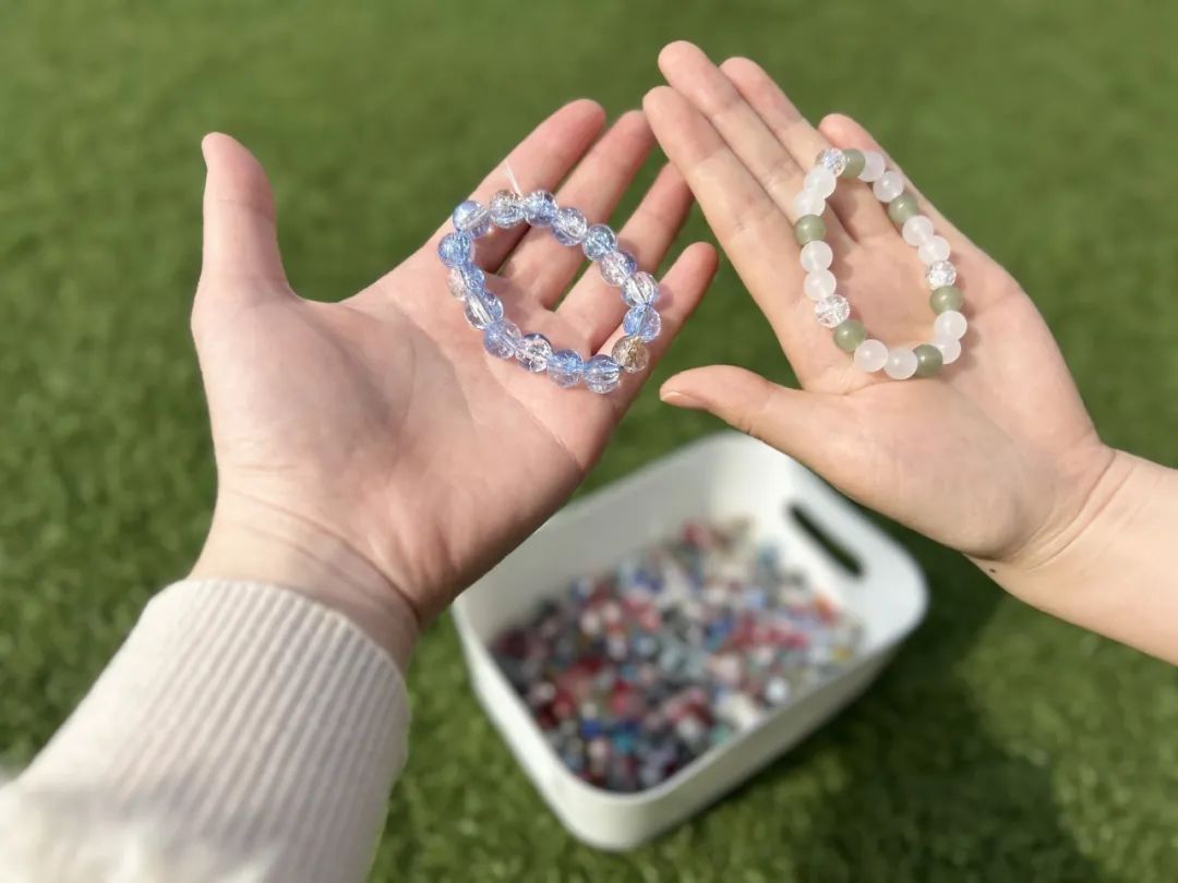 串珠手作區(qū)也同樣吸引了眾多同學(xué)駐足,晶瑩剔透的琉璃珠與編織線在指尖穿梭,化作手鏈、掛飾等精美工藝品?;顒訉鹘y(tǒng)手工藝與現(xiàn)代設(shè)計結(jié)合,讓參與的同學(xué)們在專注創(chuàng)作中體會匠心精神的傳承,更在指尖流淌的創(chuàng)意中找到了心靈的寧靜。
