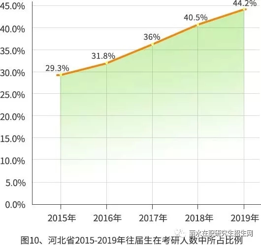 河北省2015年往屆生所占比例為29.3%,到2019年這個比例升至44.2%: